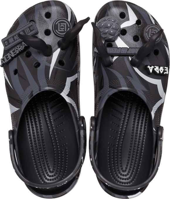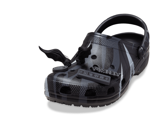 Blending influences from the East and the West, the Classic Clog silhouette is wrapped in the iconic CLOT Alienegra Camo print featuring reflective brush strokes. Exclusive Jibbitz™ feature otherworldly charms like pointed alien ears and a UFO, while other charms are a bit closer to home like a sweet pineapple bun.