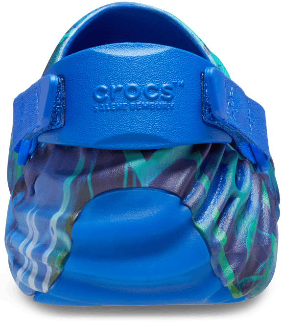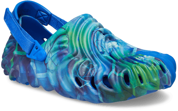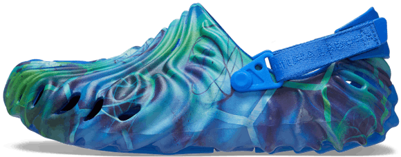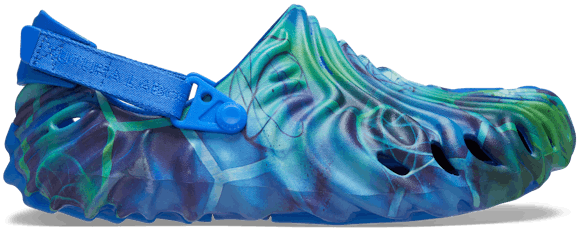 The Crocs Pollex Clog by Salehe Bembury is an exploration of form and function that balances heritage with the most innovative mold in the shoe business. The Crocs Pollex is composed of 3 of his signature fingerprints merged together, with dramatic concave ridges allowing for multi-directional traction. The shoe can be worn two ways with two adjustable and removable heel straps; "Trail" for lifestyle & outdoor use and strapless for "Free" wear.