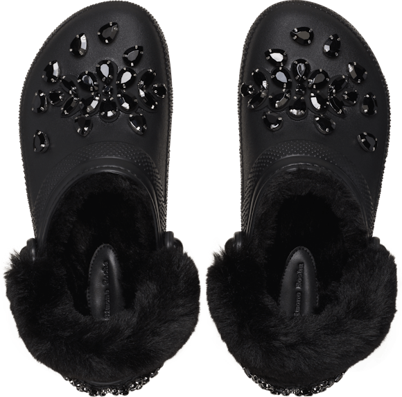 The Simone Rocha x Crocs Classic Lined Clog offers a functional everyday silhouette for those who don’t compromise on comfort or style. Stay cozy with a soft internal lining, secured with an elegant fuzzy heel strap. Pearl and crystal Jibbitz™ charms pack on the glamour, adorning the clog’s upper and back heel cup.