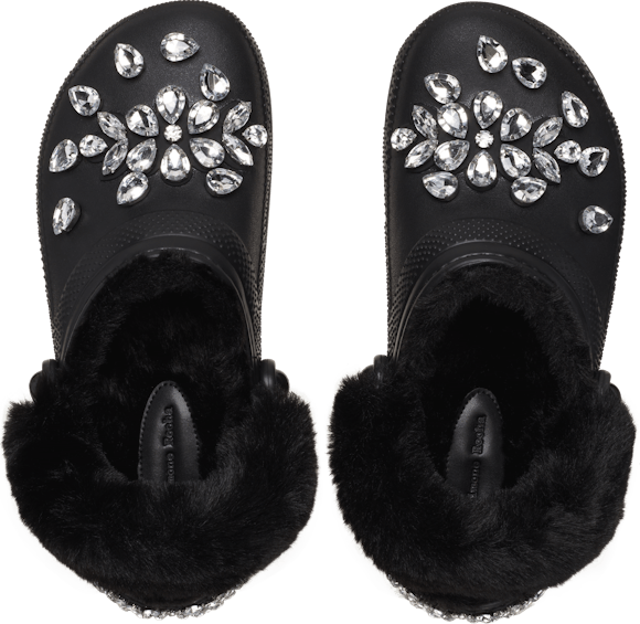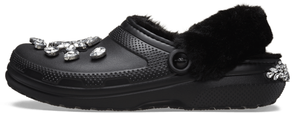 The Simone Rocha x Crocs Classic Lined Clog offers a functional everyday silhouette for those who don’t compromise on comfort or style. Stay cozy with a soft internal lining, secured with an elegant fuzzy heel strap. Pearl and crystal Jibbitz™ charms pack on the glamour, adorning the clog’s upper and back heel cup.
