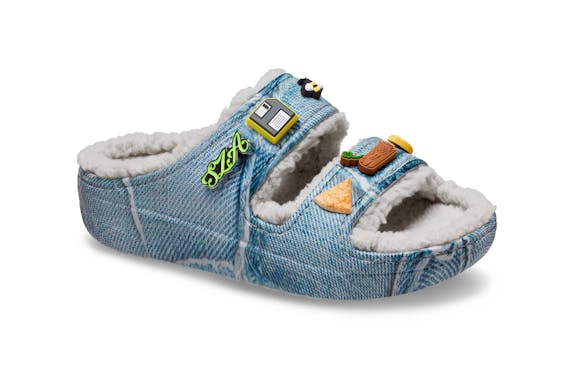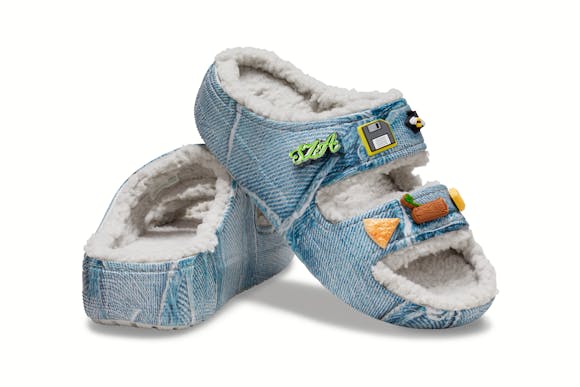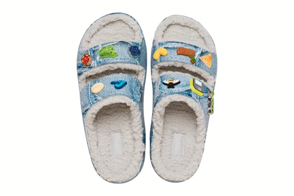 Keep it Cozzzy for cold conditions, air conditioning, and any weather where your feet need a little extra love and comfort. Your toes will thank you for the fuzz feeling inside a 90s-inspired denim print, while retro Jibbitz™ picked by SZA herself pop on top.